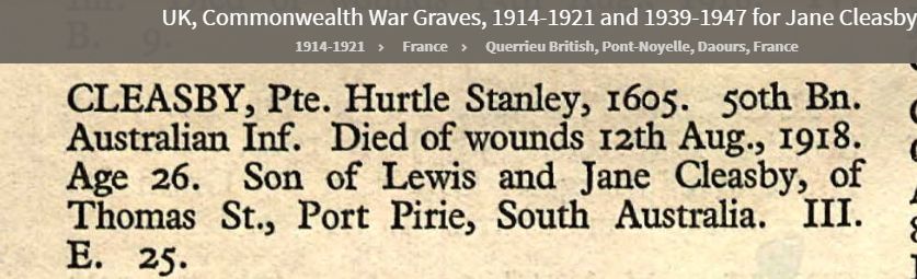 Hurtle Stanley CLEASBY [17328] (1892-1918) |