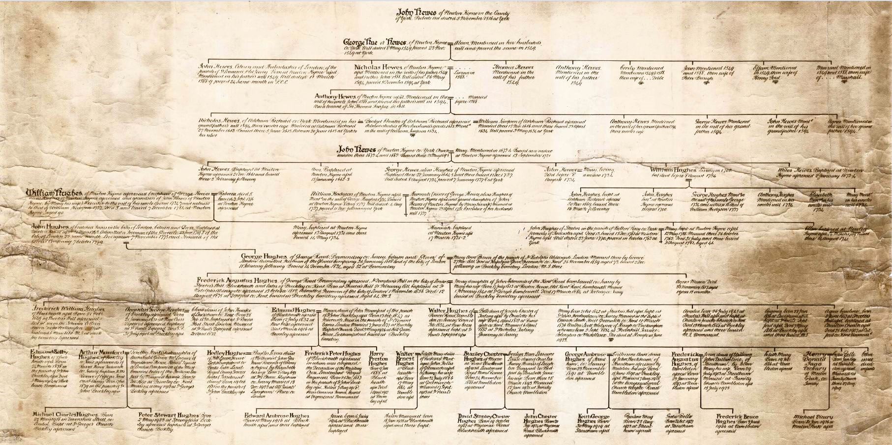 This Tree has been preserved by Rev John Chester Hughes (1924 - 2008) late Dean of Leicester Cathedral, who researched the family and wrote on his findings, particularly on the content of the several wills he discovered.