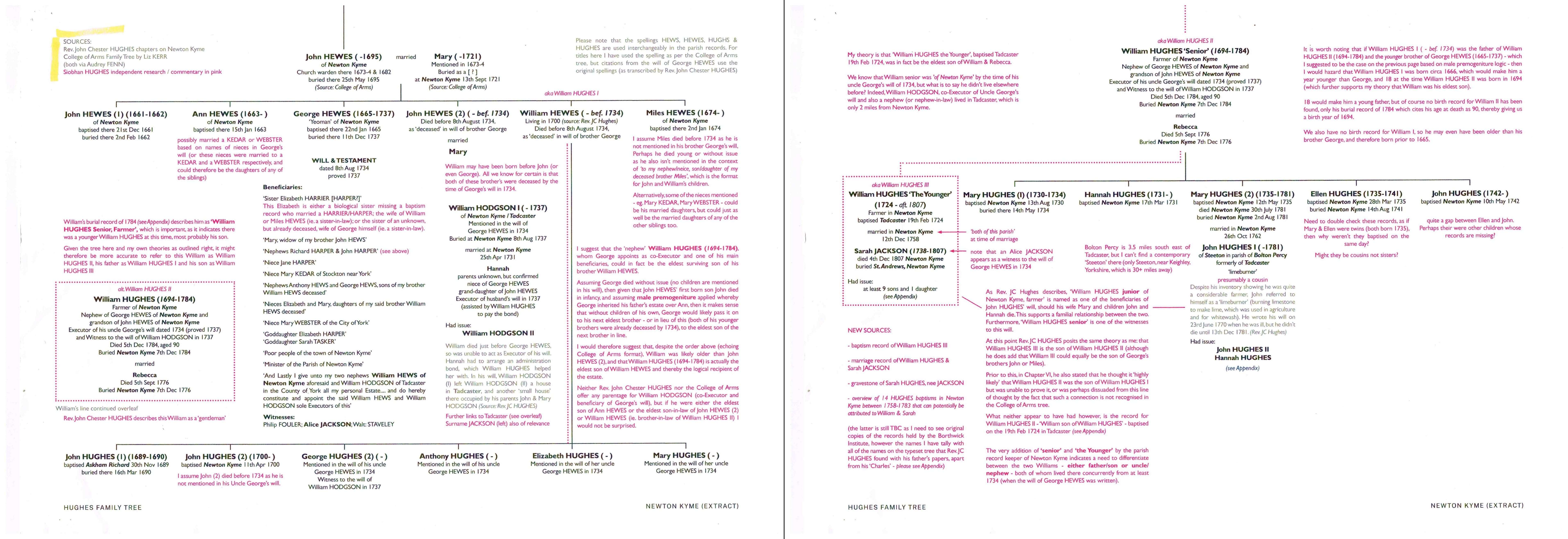 • Hughes Family of Newton Kyme: College of Arms Pedigree. Commentary on the anomalies, by Siobhan Hughes a researcher and Hughes family member - 2021