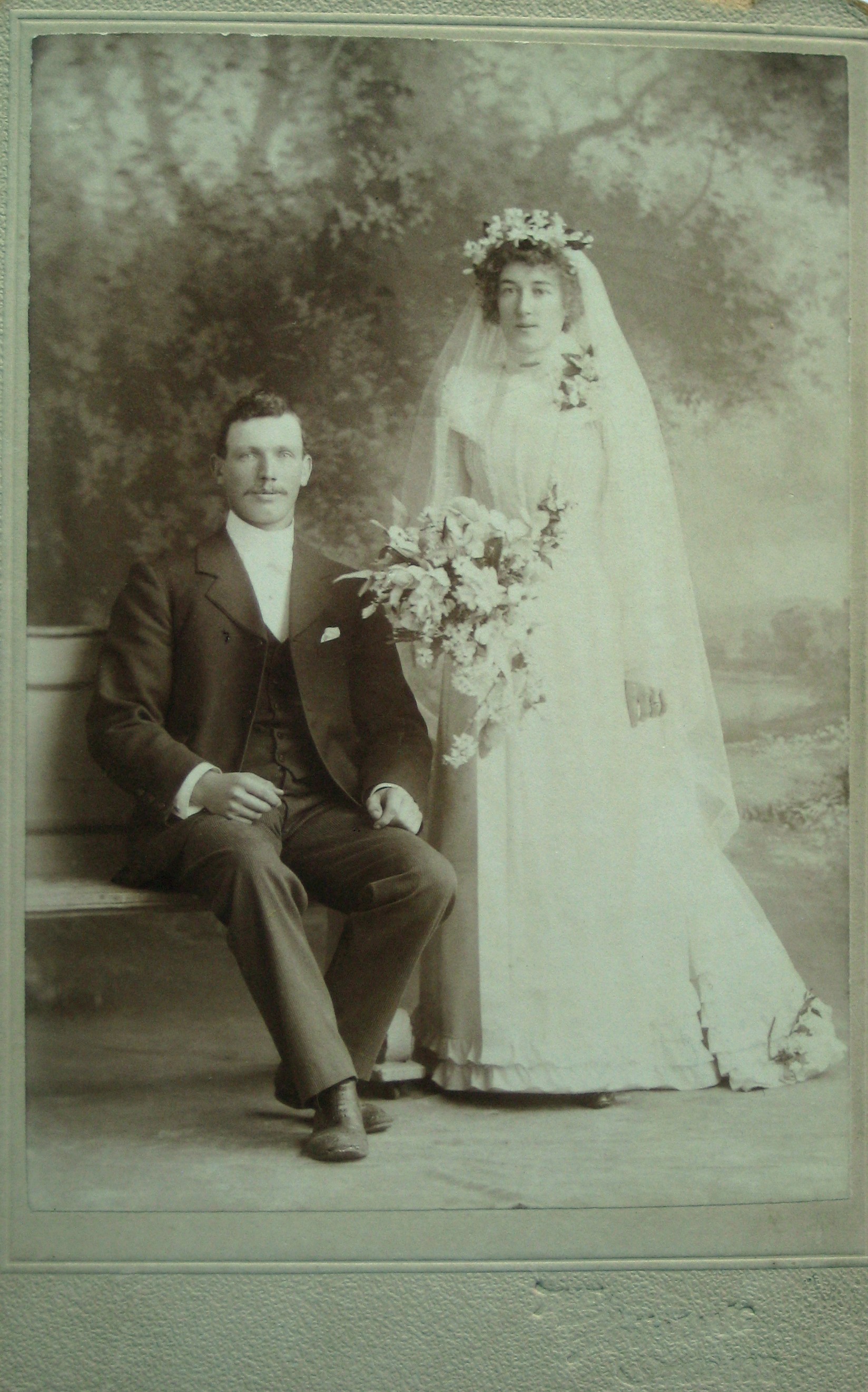 • Percy Hughes & Amy Lewis: Wedding Studio Photo, 1902, Methodist Church Cherry Gardens, South Australia.