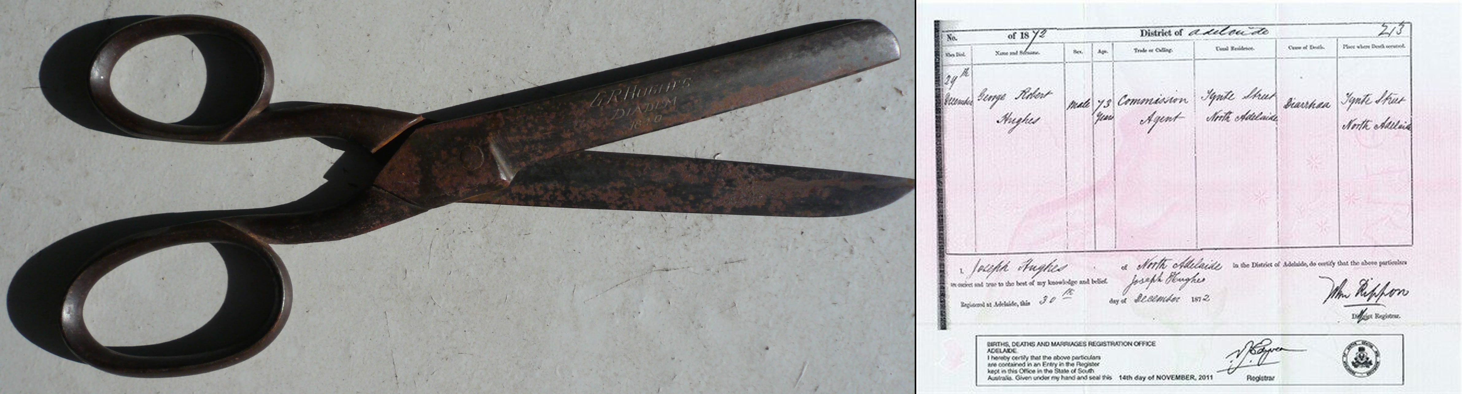 South Australian Register (Adelaide) Thursday 2 January 1873 Death Notice: HUGHES.-On the 29th December, at North Adelaide, George Robert Hughes, aged 73 years. An old colonist of 32 years.