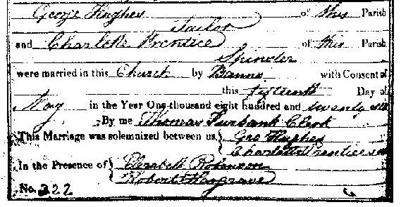 • Geo Hughes & Charlotte Prentice: Marriage, 1826, Parish Church Leeds, York. (Signed with 'X')
