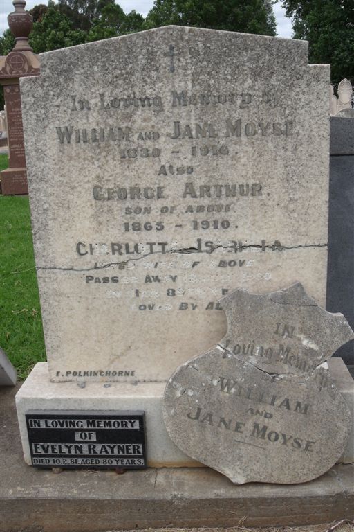 • Resided: At Toby's death, 1948, 10 Henry st, Croydon, Adelaide, South Australia. Charlotte married George Arthur MOYSE [4144] [MRIN: 771], son of William MOYSE [378] and Jane SNELL [3709], on 22 Feb 1893 in Res William Moyse, Wild Horse Plains. (George Arthur MOYSE [4144] was born on 22 Sep 1865 in Nairne, South Australia, died on 1 May 1910 in North Adelaide, South Australia and was buried in Hindmarsh Cemetery, Adelaide, South Australia.)