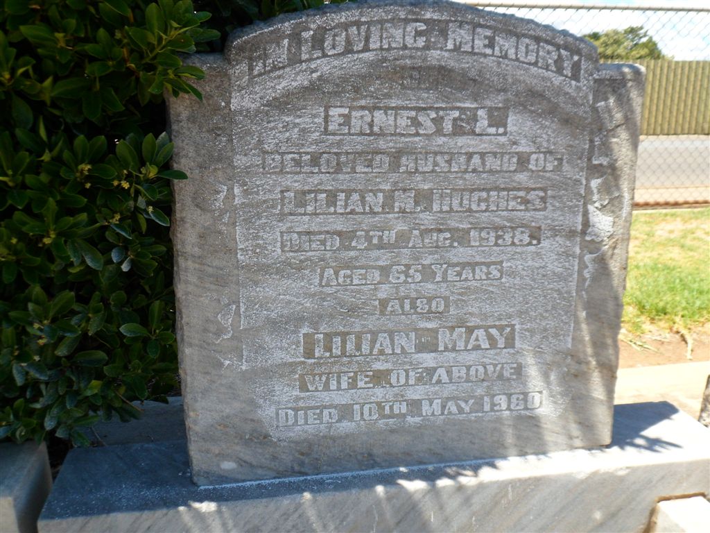 Dudley Park Cemetery: HUGHES Ernest L 66y 1933; husband of Lilian May
