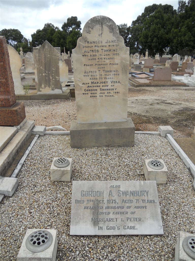 1872 SA Births 108/529 TOMKINS Alfred Talbot, Robert TOMKINS, Mary WEBBER, Adelaide 1948 SA Death 726/2393 TOMKINS Alfred Talbot, Norwood 1948 Hindmarsh CemeteryMemorial InscriptionTOMKINS Alfred T, 76y, 1948