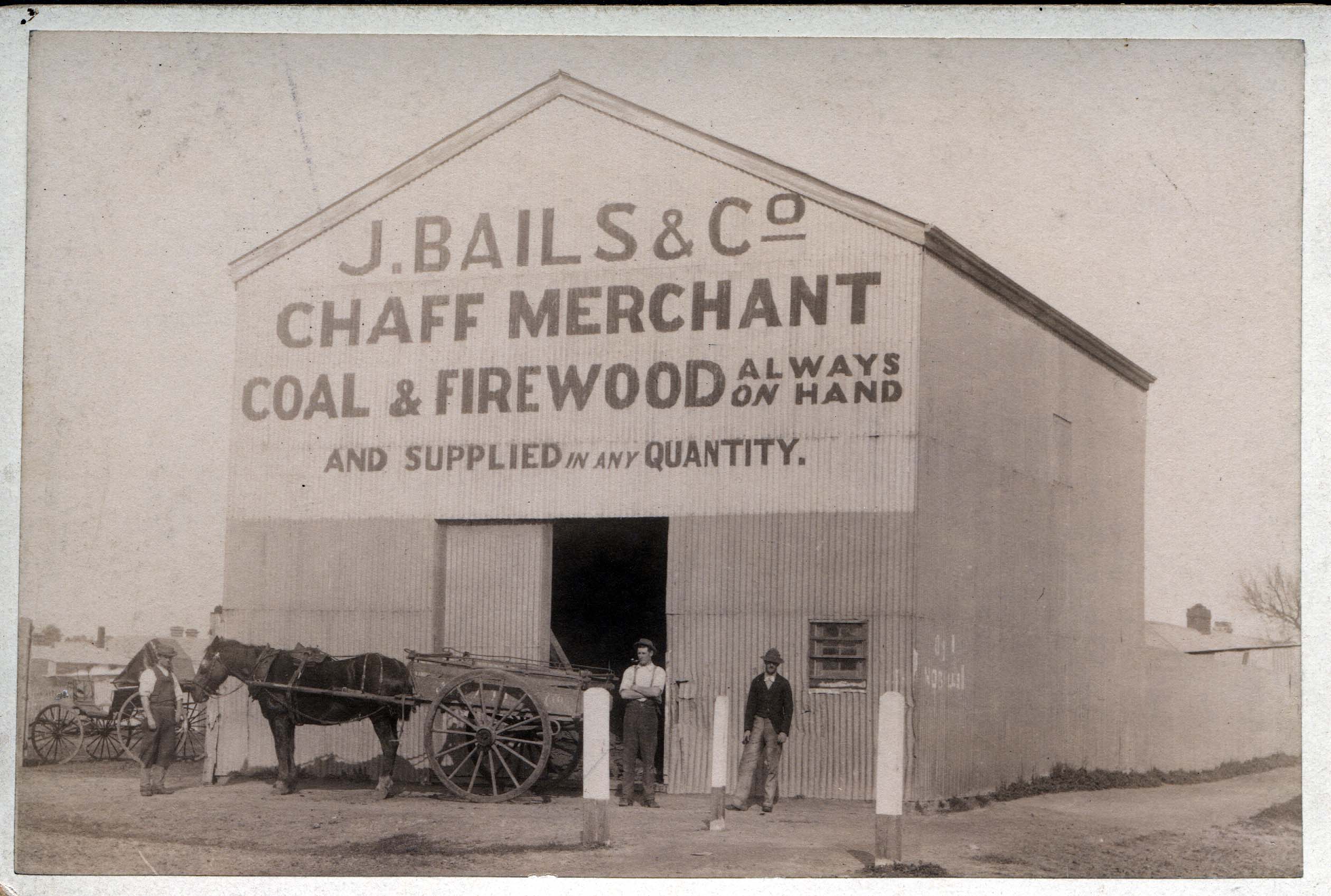 • J Bails & Co: Chaff Merchant, Cir 1892, Queenstown, Port Adelaide, South Australia. (Image Courtesy S L Bails)