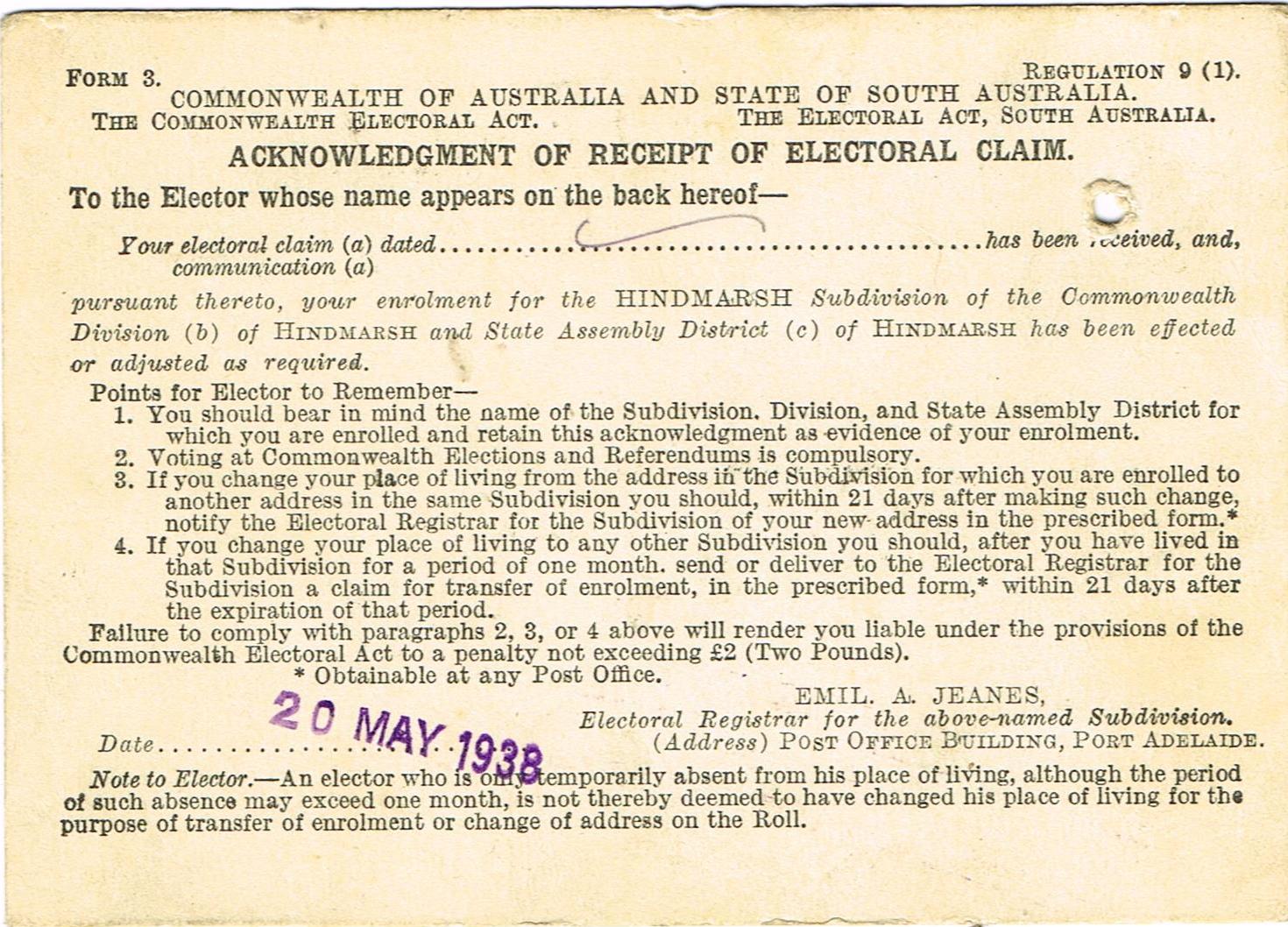 Born: Scotts Creek, SA, 23 July 1907