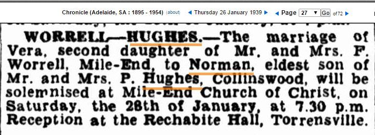 WISSELL-LEWIS.-The marriage of Doreen E., youngest daushter of Mr. and Mrs. M.J. Wissell, Aldgate, to Frederick W. eldest son of Mr and Mrs. P. Lewis, Scott's Creek, will be solemnised at the Aldgate Methodist Church, on Saturday, the 30th of September, at 6.45 p.m. Friends and relatives cordially invited to ceremony.