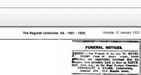 1925 SA Death 475/577 PERRY Henry undefined Adelaide