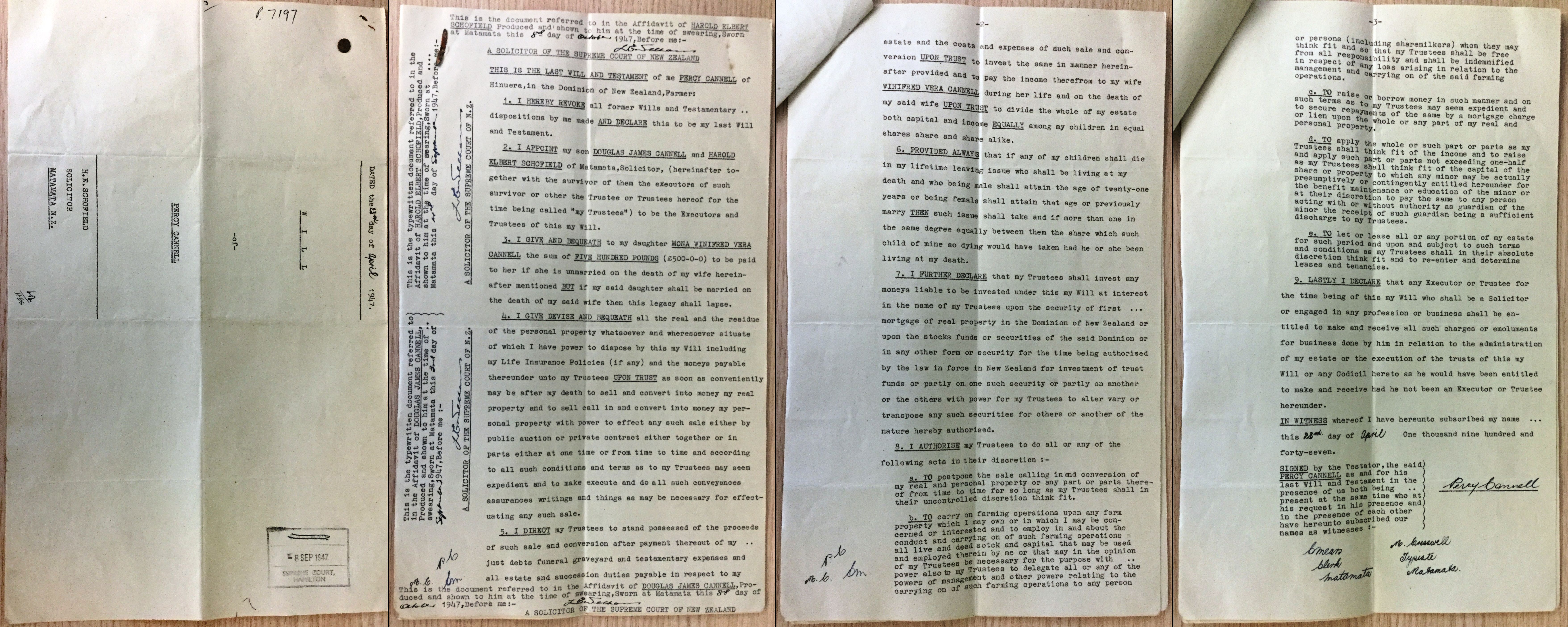 • Percy Cannell: Probate 01, 1948, Hamilton Court. (courtesy Auckland Archives)