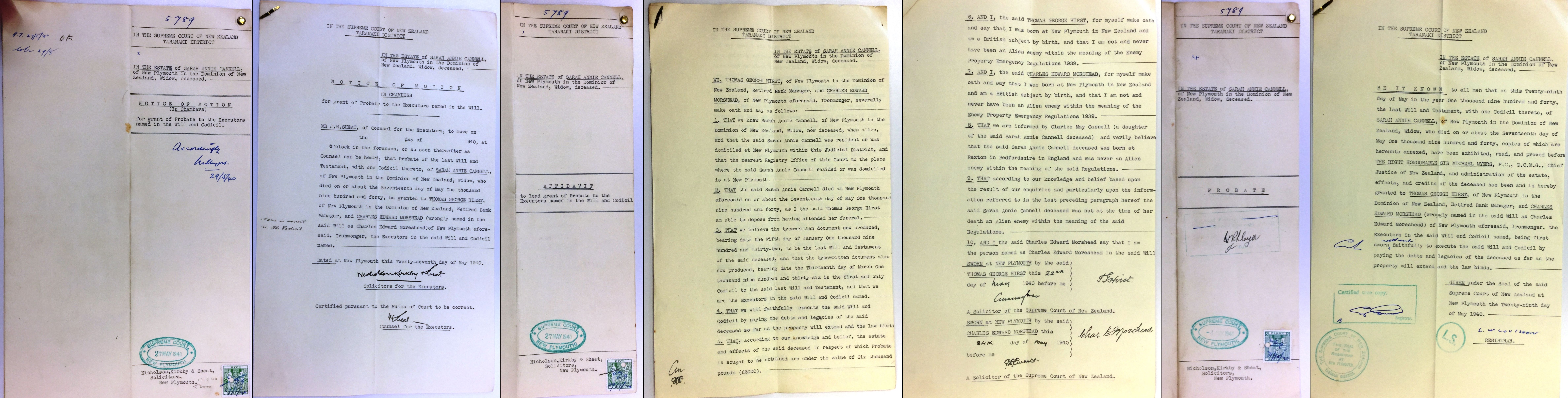 • Sarah Annie Cannell: Probate, 1940, New Plymouth. (courtesy Wellington Archives)