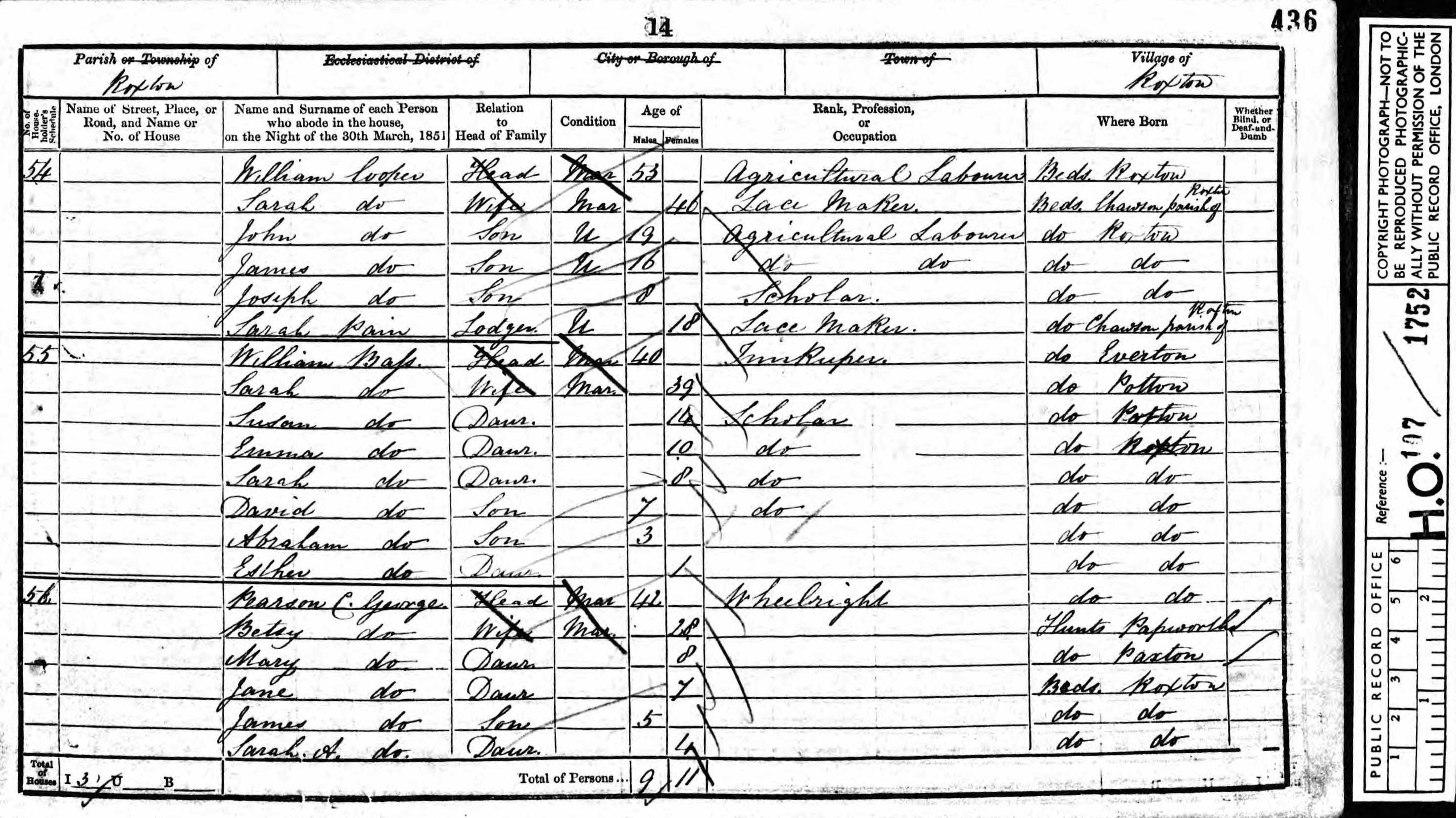 • England Census: wheelwright, 1851, Roxton, Bedfordshire, England. Pearson C. George is recorded as Head of house, Married, 42y and described as a Wheelwright.