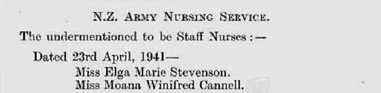 • NZ Army WW2 Appointments etc 1939-1945: Appointment - Staff Nurse, 23 Apr 1941, NZ Army Nursing Services.