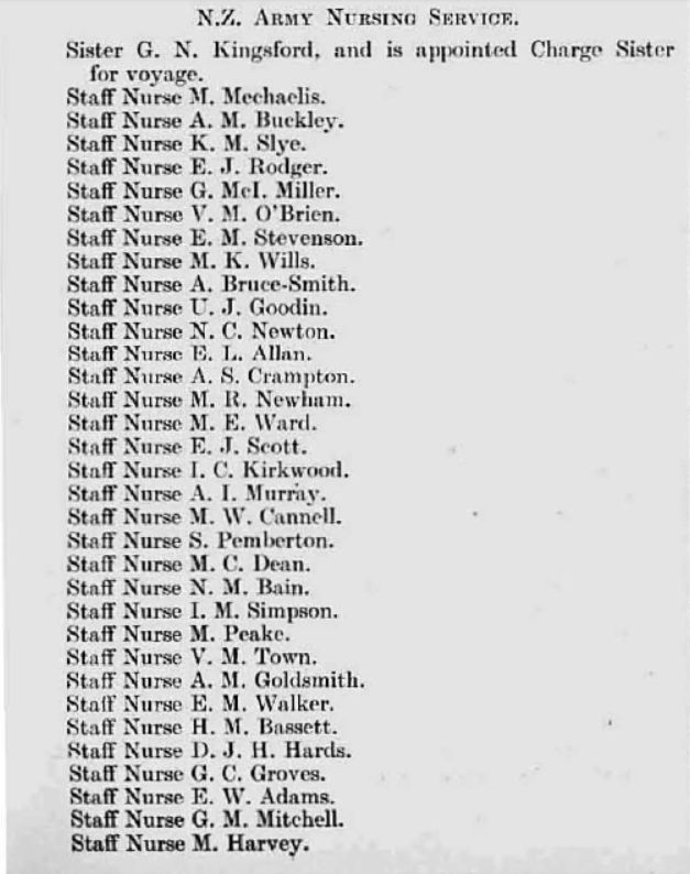 • WW2: NZ Army Nursing Service - 23 April, 1941.