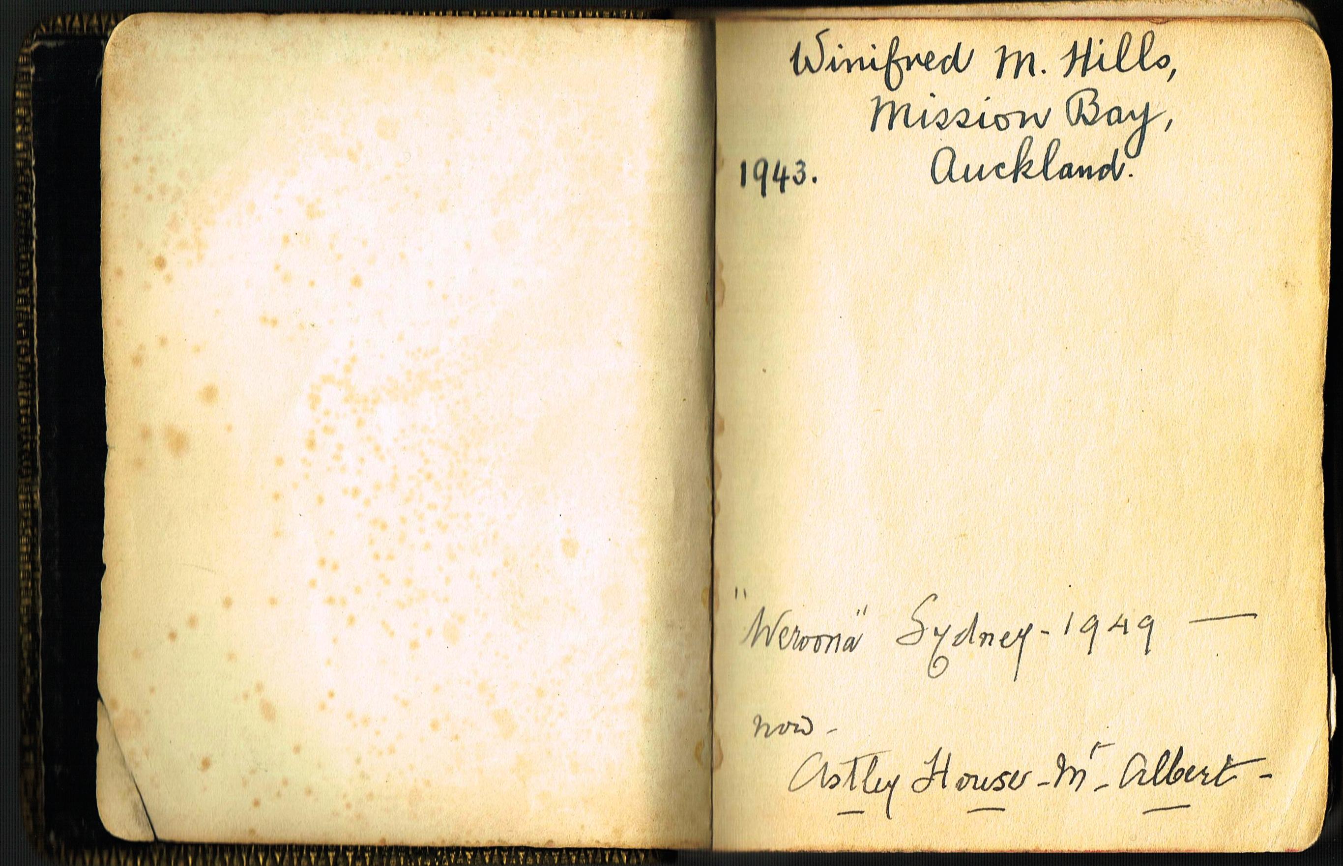 • Winifred Mona Hills (nee Cannell): Methodist Hymn Book - Inscription 1943; Sydney 1949.