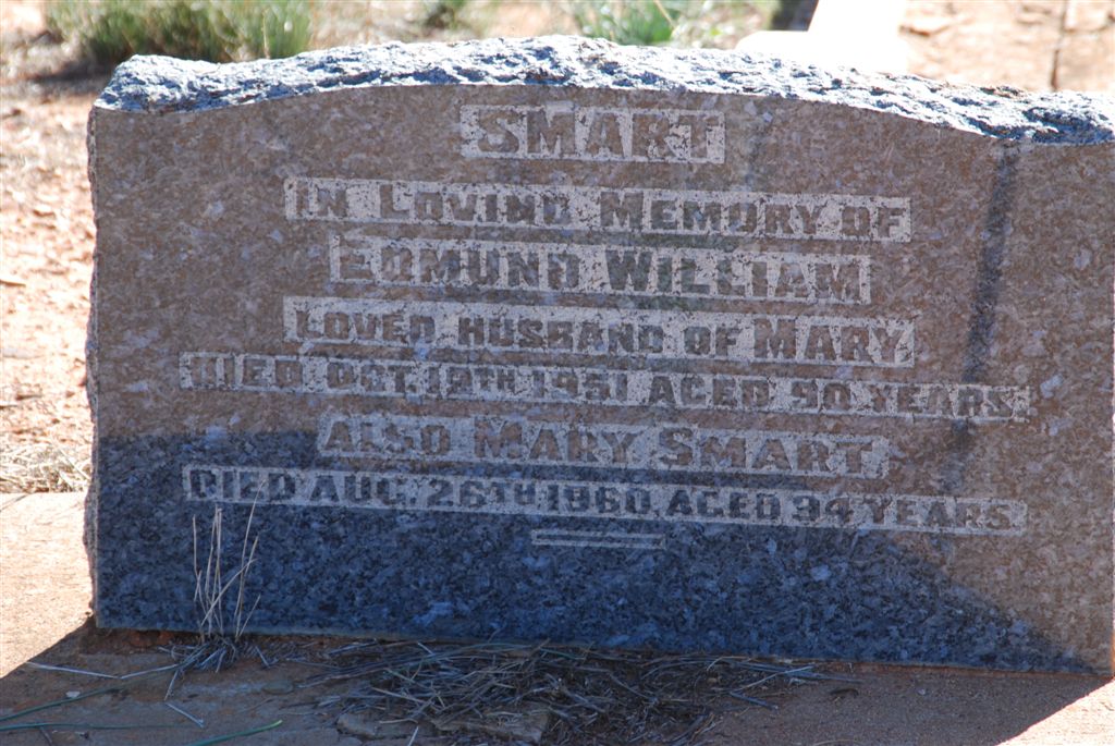 SMARTEdmund William19-Oct-1951 90 Dawson Memorial Inscription: Surname: SMART First Names: Edmund William Death Date: 19-Oct-1951 Burial Date: Age: 90 Cemetery: Dawson Relations: Husband of Mary Source: Memorial Inscription