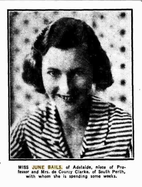 Northern Argus (Clare, SA : 1869 - 1954) Fri 20 Jan 1928 PERSONAL. Misses Jean and Gwen Brown and Miss June Bails, are spending their holidays in Clare as the guests of Mr. and Mrs. John Bails.