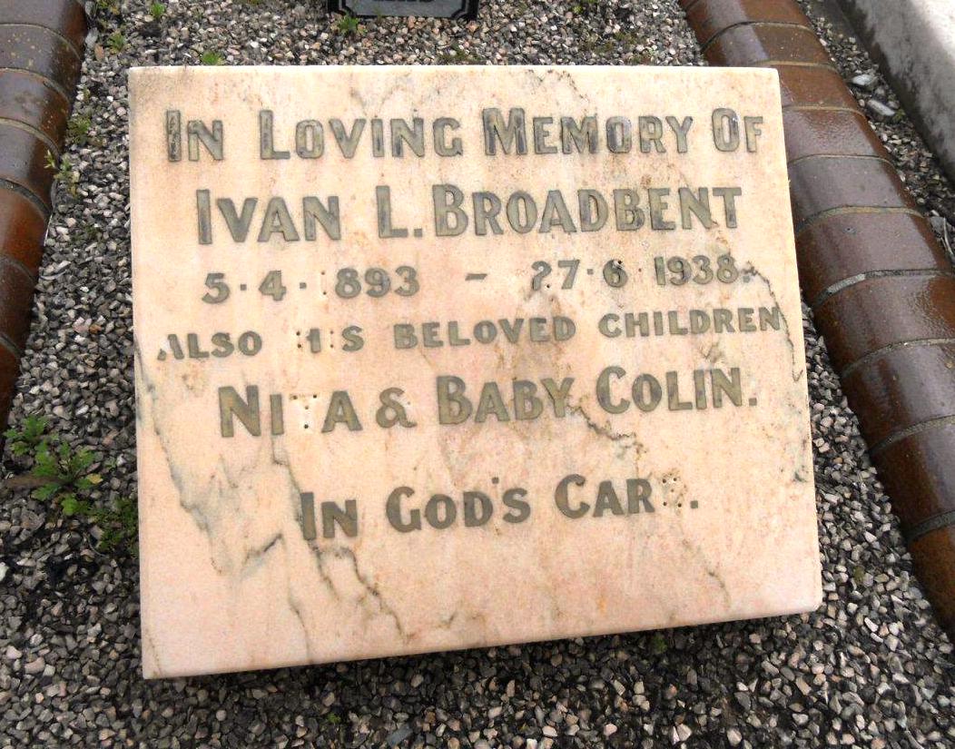The Advertiser Tuesday 27 June 1938 Death Notice: BROADBENT. -In loving memory of our dear son and brother Ivan, who fell asleep on the 27th of June, 1938. A patient sufferer called to rest. Loved in life, treasured in death. A beautiful memory is all we have left. -Inserted by his loving mother and brother Lionel.