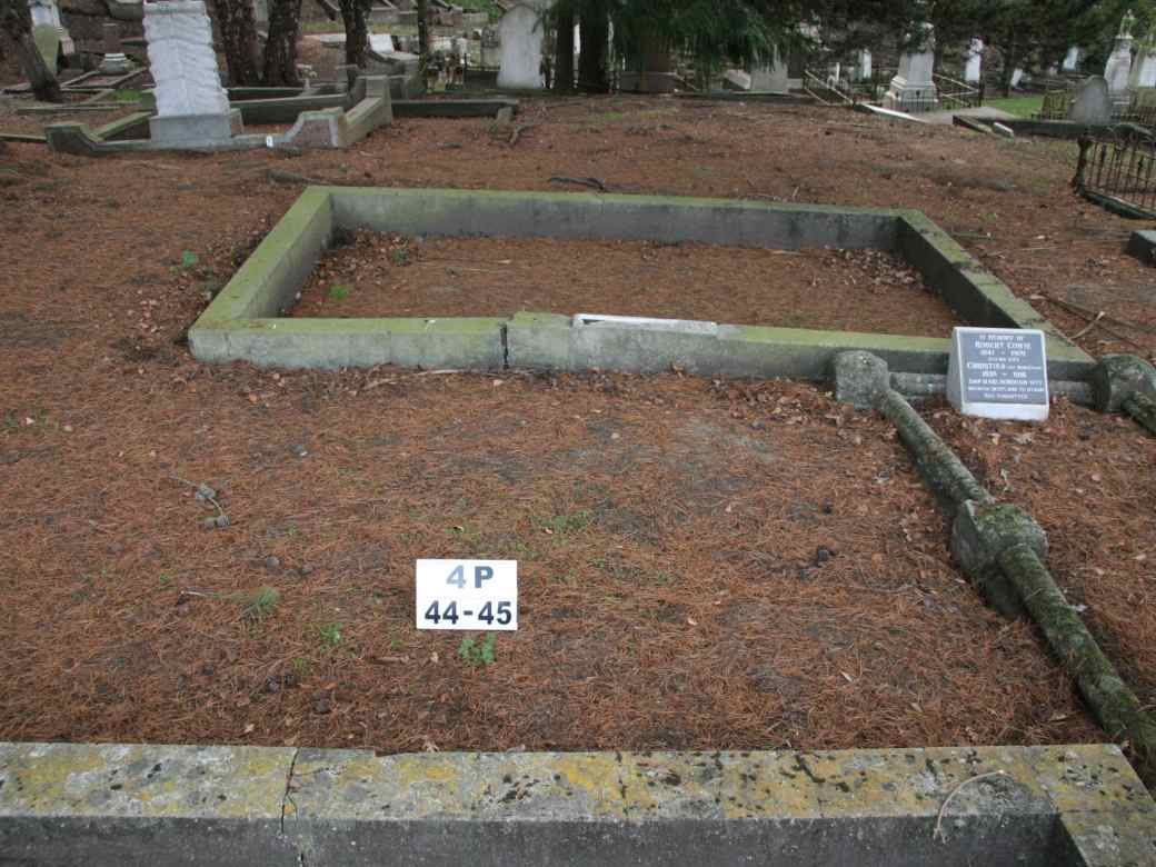 Dunedin City Council Southern Cemetery Block 4P. Plot 45 - Eglinton Rd - nearest to 4P Original reference:- S18750324 Place died:- Dunedin